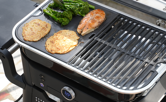 Experience the ultimate in grilling with the Griddle – EliteFyre Volteq Electric Grill. The Griddle is a versatile and efficient cooking tool that allows for even heat distribution and easy flipping. With its large surface area, you can cook multiple dishes at once. Its non-stick coating and removable grease tray make for easy cleanup. Elevate your cooking game with the Griddle.